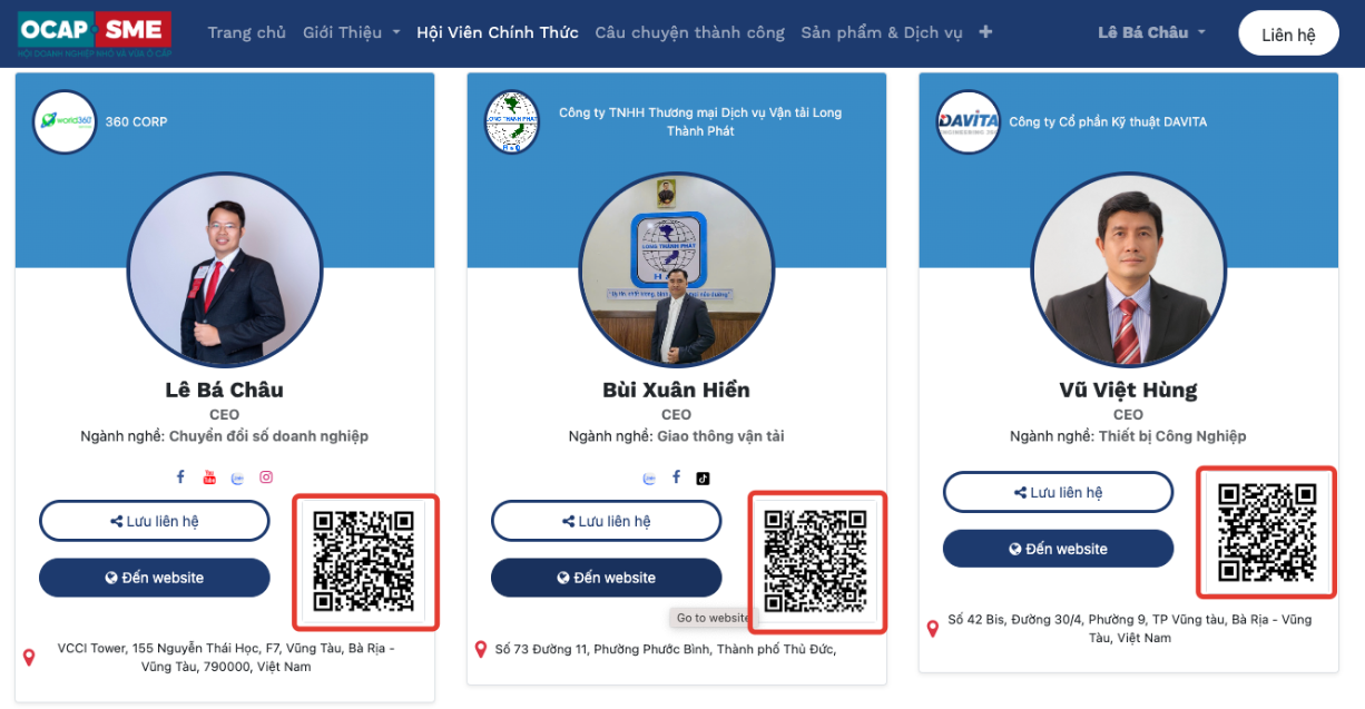 - Hội viên có thể quản lý và cập nhật hồ sơ điện tử bất kỳ lúc nào, kết hợp QR code để chia sẻ nhanh chóng, mang lại sự tiện dụng vượt trội trong việc quảng bá và kết nối.